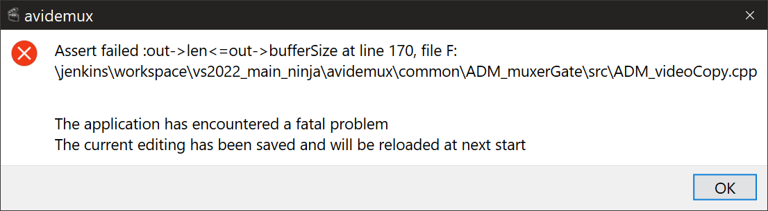 Quote from: Faiakes on Today at 04:07:05 PMI go this and a crash from, I suspect, a malformed video file.